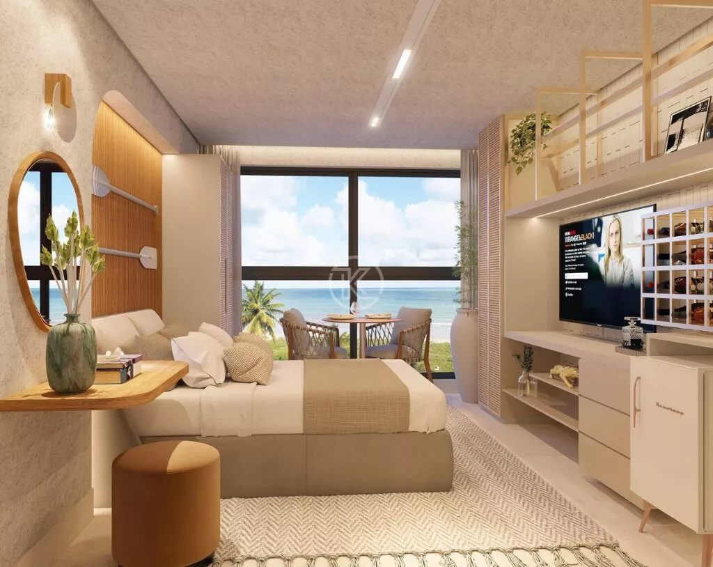Os flats, com áreas que variam de 21m² a 24m², oferecem um espaço ideal para quem busca qualidade e estilo de vida à beira-mar.
